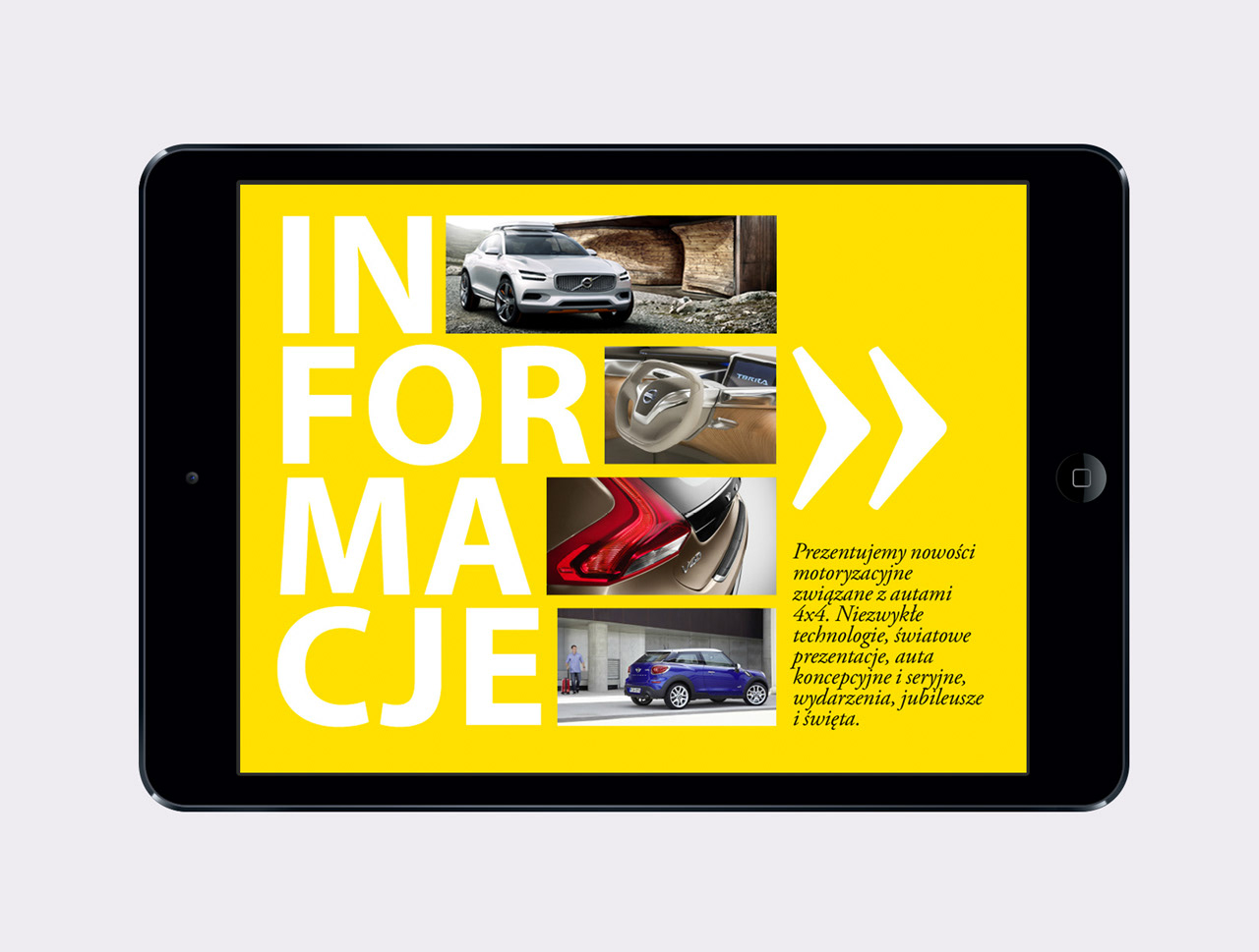 Projekty okładek i layoutu oraz kierownictwo artystyczne dwumiesięcznika o tematyce off-roadowej i turystycznej. Magazyn publikowany w wersji drukowanej oraz mobilnej na tablety.