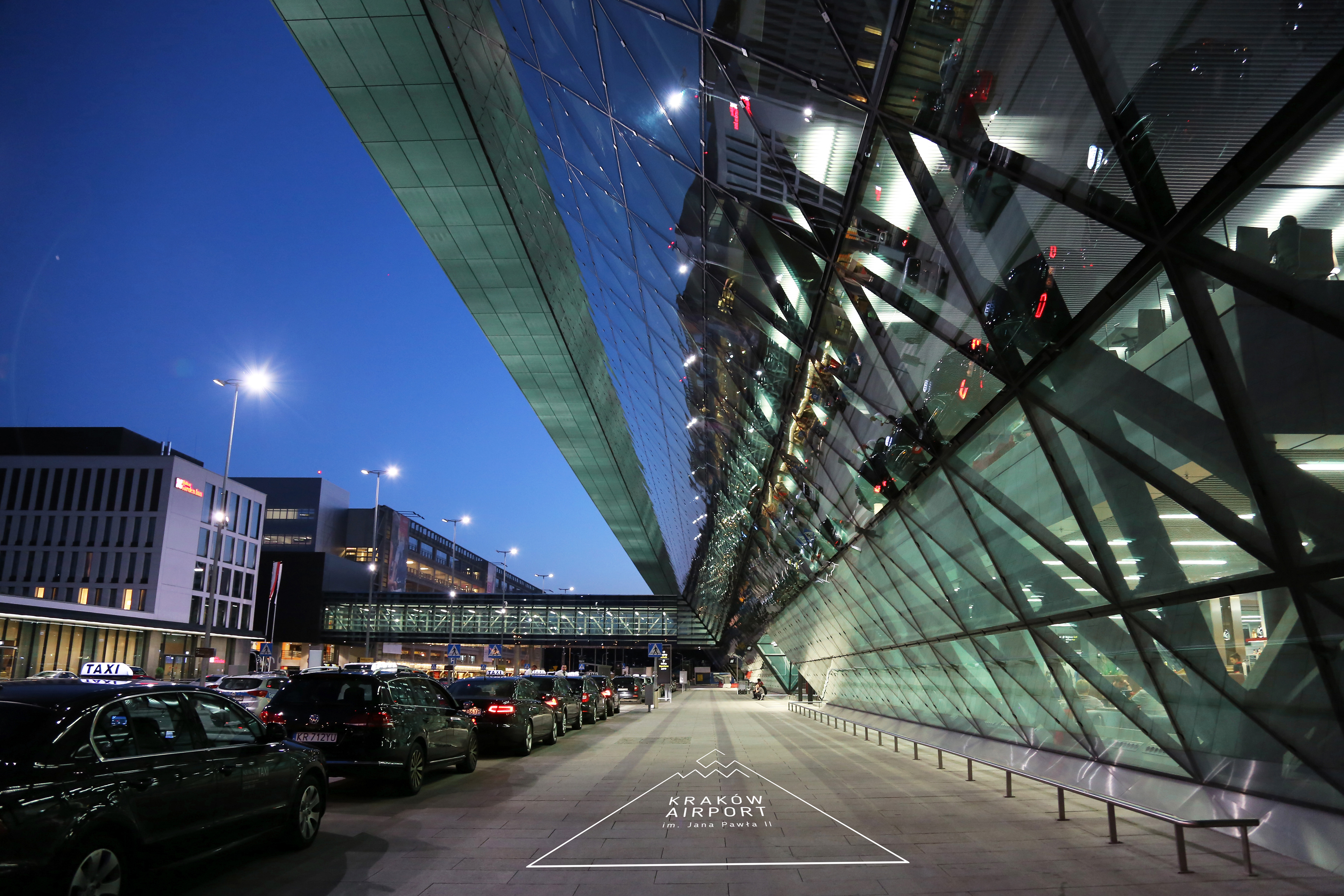 Logo lotniska im. Jana Pawła II w Krakowie. Projekt wykonany w ramach konkursu zorganizowanego przez Międzynarodowy Port Lotniczy im. Jana Pawła II pod patronatem Akademii Sztuk Pięknych im. Jana Matejki w Krakowie.