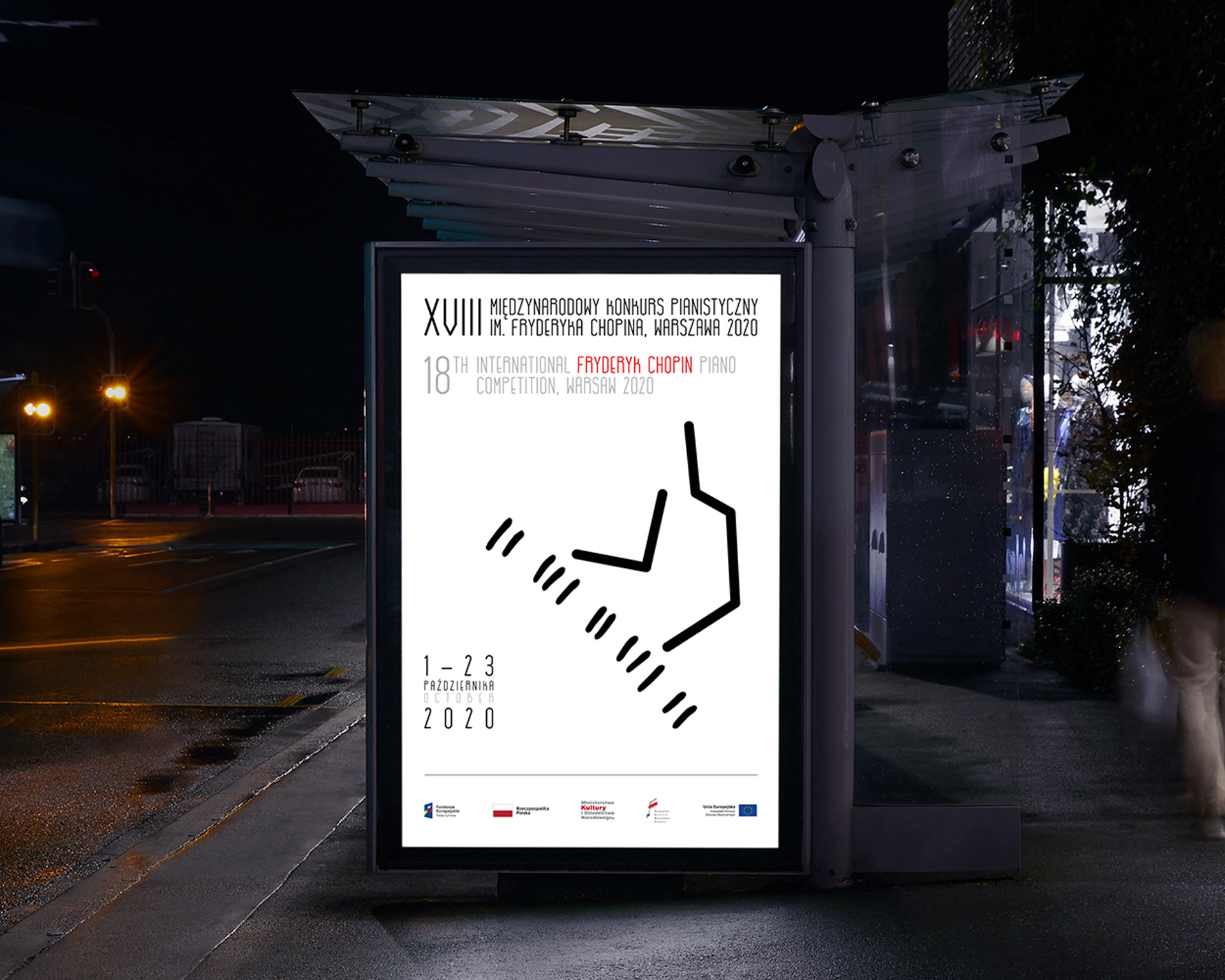 Projekt identyfikacji wizualnej XVIII Międzynarodowego Konkursu Pianistycznego im. Fryderyka Chopina. Praca wykonana na konkurs zorganizowany przez Narodowy Instytut Fryderyka Chopina w Warszawie.